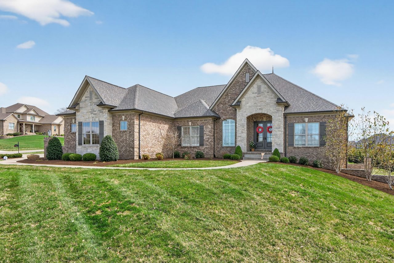 Want to build with Collier Custom Homes but don't want to wait? This is your chance! Welcome to 100 Blue Wing Pass, a five-year-young, move-in-ready home in the highly sought-after Drakes Landing community. This spacious 4-5 bedroom ranch features a finished walkout basement and a smart split-bedroom layout on the main level. There is also potential for a fifth bedroom, the current office can be converted and the Bourbon Room can be removed to restore a closet if desired. The main living area offers an open and inviting layout, complete with a chef's kitchen featuring upgraded appliances, a massive island, and stunning Amish-built custom cabinetry. The kitchen flows seamlessly into the breakfast area and great room, creating the perfect space for entertaining. You'll also love the thoughtfully designed drop zone and the beautifully finished laundry room on the first floor. An open staircase leads to a truly exceptional walkout basement designed for both relaxation and entertainment. This level includes a theatre area (equipment and screen included), a workout room or playroom, and a full bar equipped with a sink, fridge, microwave, and dishwasher. Bourbon enthusiasts will appreciate the dedicated Bourbon Room, which can easily be converted back into a bedroom closet if preferred. The basement also features an additional bedroom, full bath, and office. Storage is no concern in this home, with 511 square feet of dedicated storage space complete with built-in shelving. Property also has Control 4 Automation System. The supersized three-car garage adds even more convenience. Step outside to enjoy the covered back porch with a cozy fireplace, perfect for year-round relaxation or entertaining guests. Location of this home offers close proximity to shopping and dining, with easy access to Bluegrass Airport and the University of Kentucky. This home truly delivers the feel of new construction without the wait???schedule your private showing today!