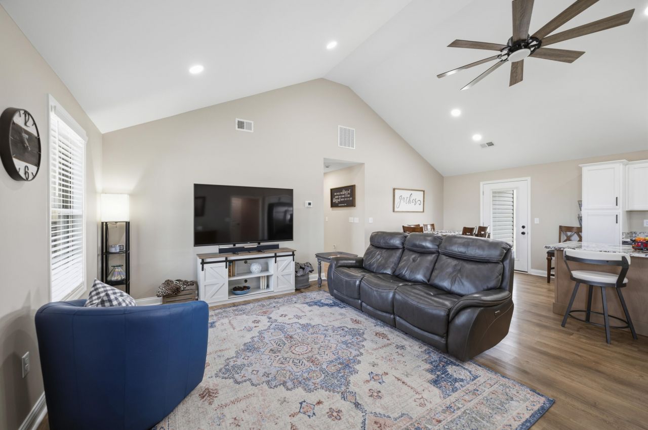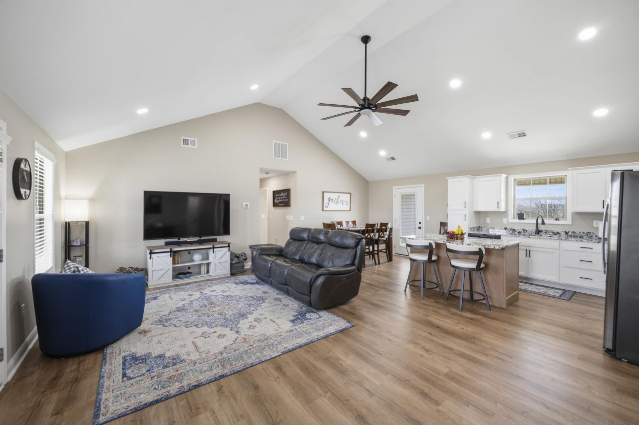 Time to slow down and enjoy the easy life here at 450 Wyldwood Way in Berea, Kentucky! This famous ranch home features a split bedroom floor plan with an open concept kitchen/dining and great rooms. Other notable features include a luxurious primary en-suite with a large walk in closet, raised height vanity, LVT flooring, walk in shower with a glass frameless door. The primary is also located near the laundry room for your convenience! This home has set steps leading inside from the 2 car garage and from the front door. If you have any mobility issues, this home could be ideal for you! There's no carpet, a dual fuel HVAC system, stainless appliances, covered front and back patios, glorious views and blinds throughout. There's a line easement directly behind this home creating a natural buffer from any future development!