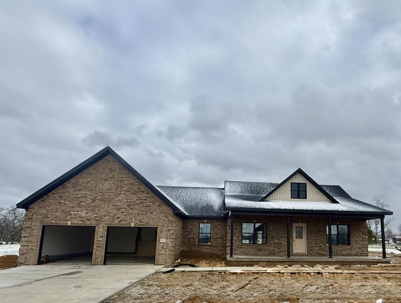 Stunning new construction brick home offering 3 bedrooms, 2.5 baths, and sitting on a nice flat one-acre lot. Inside, you'll find an inviting open floor plan with a desirable split-bedroom design, a gas log fireplace, and a spacious primary suite with an impressive ensuite bath, including a tile shower. The kitchen layout is both functional and appealing, complete with a beautiful stone island, with a pantry that is sure to be a favorite. Enjoy peaceful mornings on the covered front porch and relax in the evenings on the large covered back porch. An oversized garage adds convenience with room for larger vehicles and additional storage.