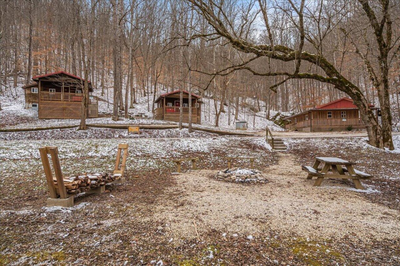 It's being shouted from the rooftops that the Red River Gorge is the place to invest???and the momentum here shows no signs of slowing down. Here is your chance to own three cabins with income potential from day one, located just 14 minutes from Slade in the heart of the Gorge. Situated on 2.34 acres, this unique property features 216 feet of direct Red River access and borders the Daniel Boone National Forest, offering guests an authentic Red River Gorge experience with water, woods, and privacy right outside the door. The main cabin offers 2 bedrooms, 1 bathroom, an open-concept living space, and a beautiful wrap-around porch perfect for relaxing after a day of hiking or exploring. The two additional cabins are efficiency studios with bathrooms and can each sleep up to four guests. The smaller cabins have recently been updated with refreshed kitchens and bathrooms. An additional bonus is the extra build site with accessible water already in place, providing the opportunity to add another cabin and expand your investment potential. Properties offering direct river access, multiple cabins, and expansion opportunities are rare in the Red River Gorge. Whether you're looking for a turnkey short-term rental portfolio or a private getaway with income potential, this property is a must see.